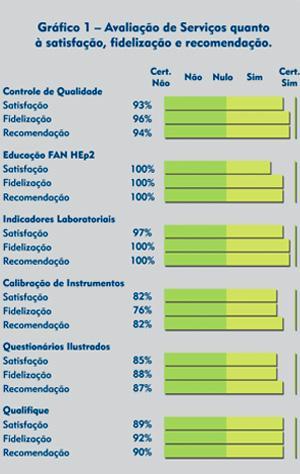 Como pode ser visto no Gráfico 1, para todos os serviços a resposta foi bastante positiva – entre sim e certamente sim -, com alto percentual de satisfação, fidelização e recomendação. O nível de satisfação para o Controle de Qualidade, como pudemos apurar, permanece inalterado em relação ao ano passado.