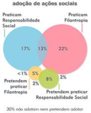 Filantropia é esporádica, eventual, constituída por atitudes isoladas, mais ligadas a ações de caridade. Se uma determinada cidade é inundada, a empresa faz doações, realiza campanha de arrecadação. Responsabilidade social é algo que está no DNA da empresa; faz parte de suas atividades cotidianas. Empresas socialmente responsáveis investem na qualidade de vida de funcionários e exigem qualidade de seus fornecedores. Não contratam fornecedores que explorem o trabalho infantil, agridam o meio ambiente ou soneguem impostos. Respeitam o consumidor e se preocupam, efetivamente, em melhorar a sociedade, em promover seus funcionários enquanto seres humanos. A empresa-cidadã desenvolve projetos sociais que atendam às necessidades, exigências e expectativas da comunidade local.